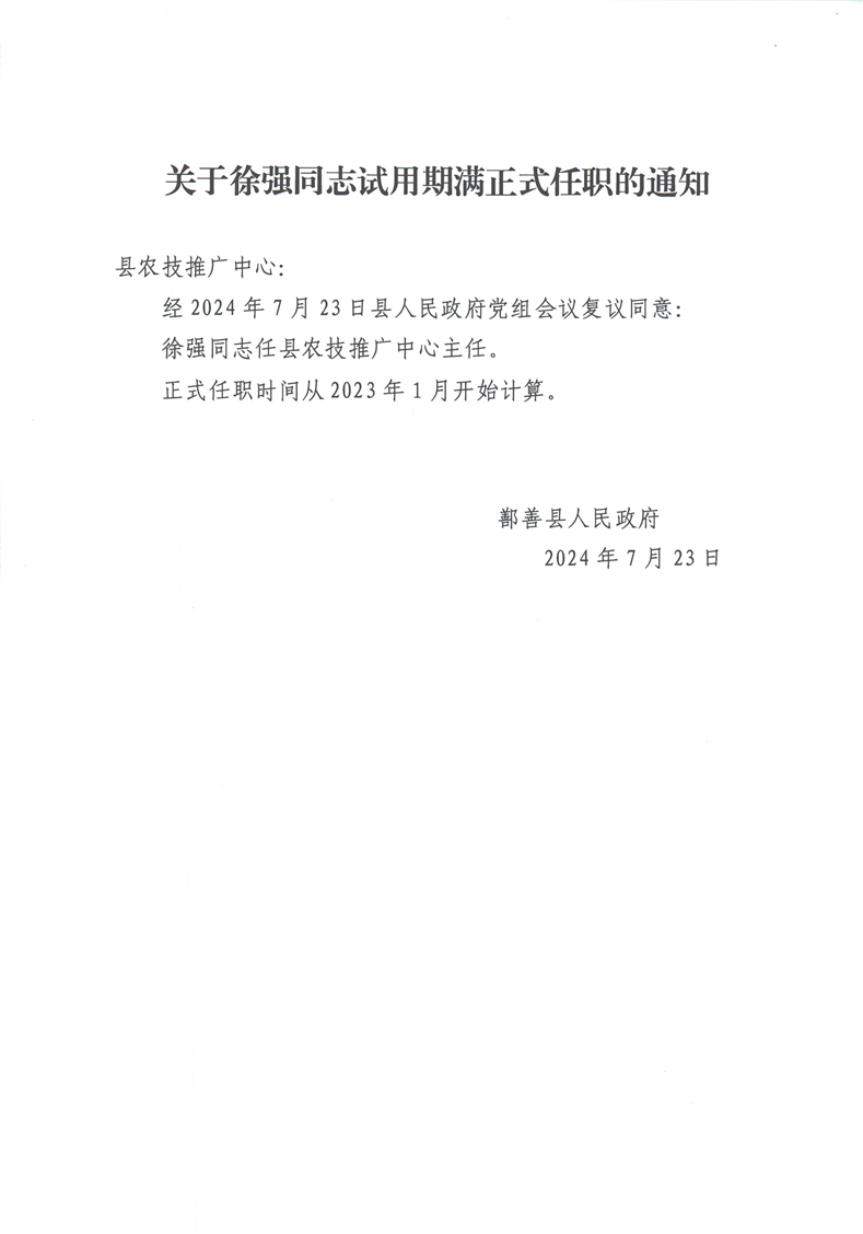 鄯政干〔2024〕8號 關于徐強同志試用期滿正式任職的通知