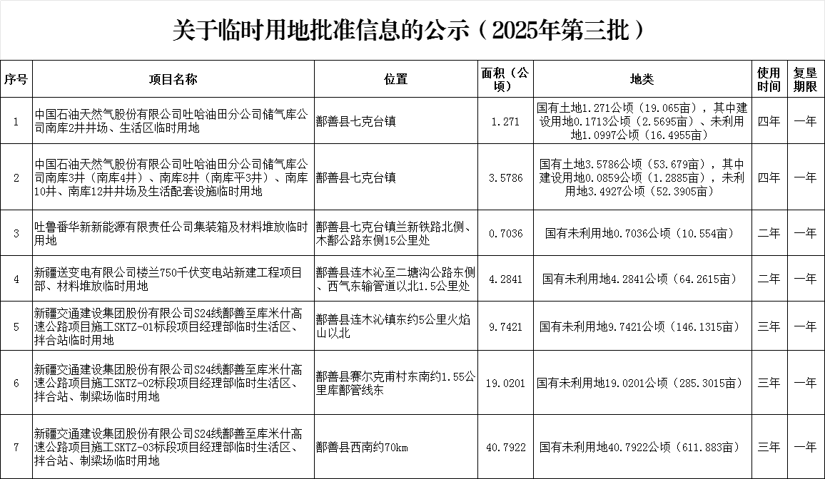 關于臨時用地批準信息的公示(2025年第三批)