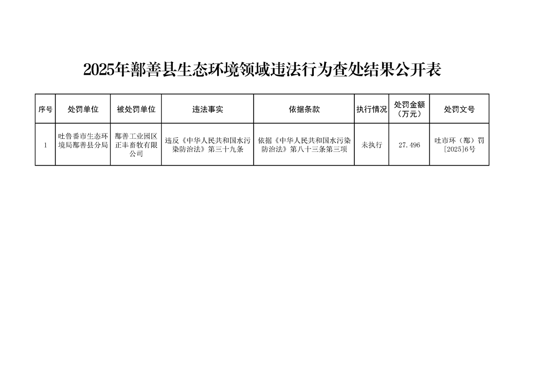 2025年鄯善縣生態環境領域違法行為查處結果公開表