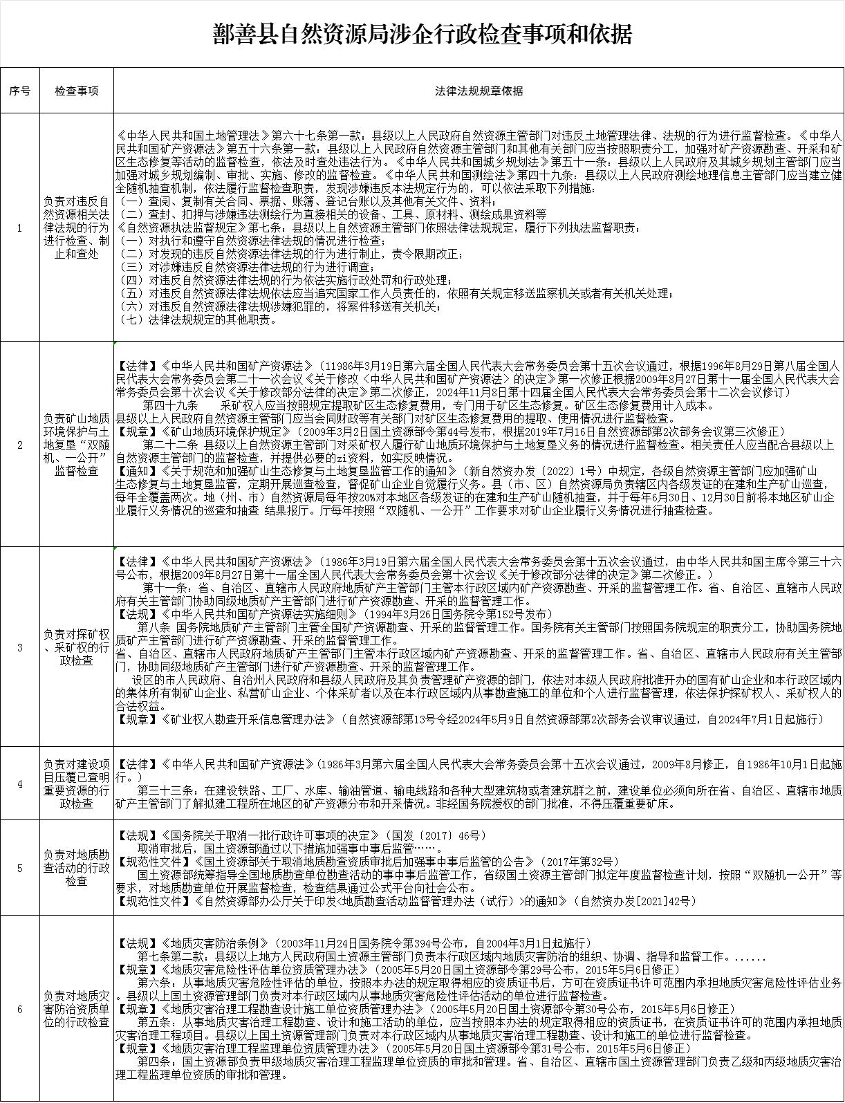 鄯善縣自然資源局涉企行政檢查事項和依據