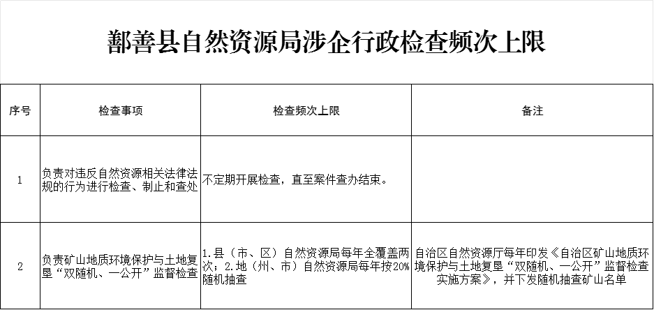 鄯善縣自然資源局涉企行政檢查頻次上限