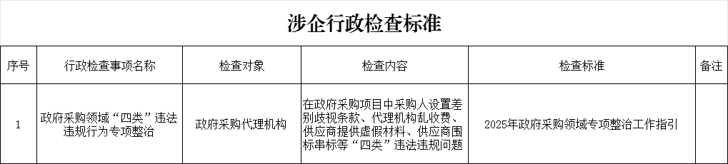 涉企行政檢查標準