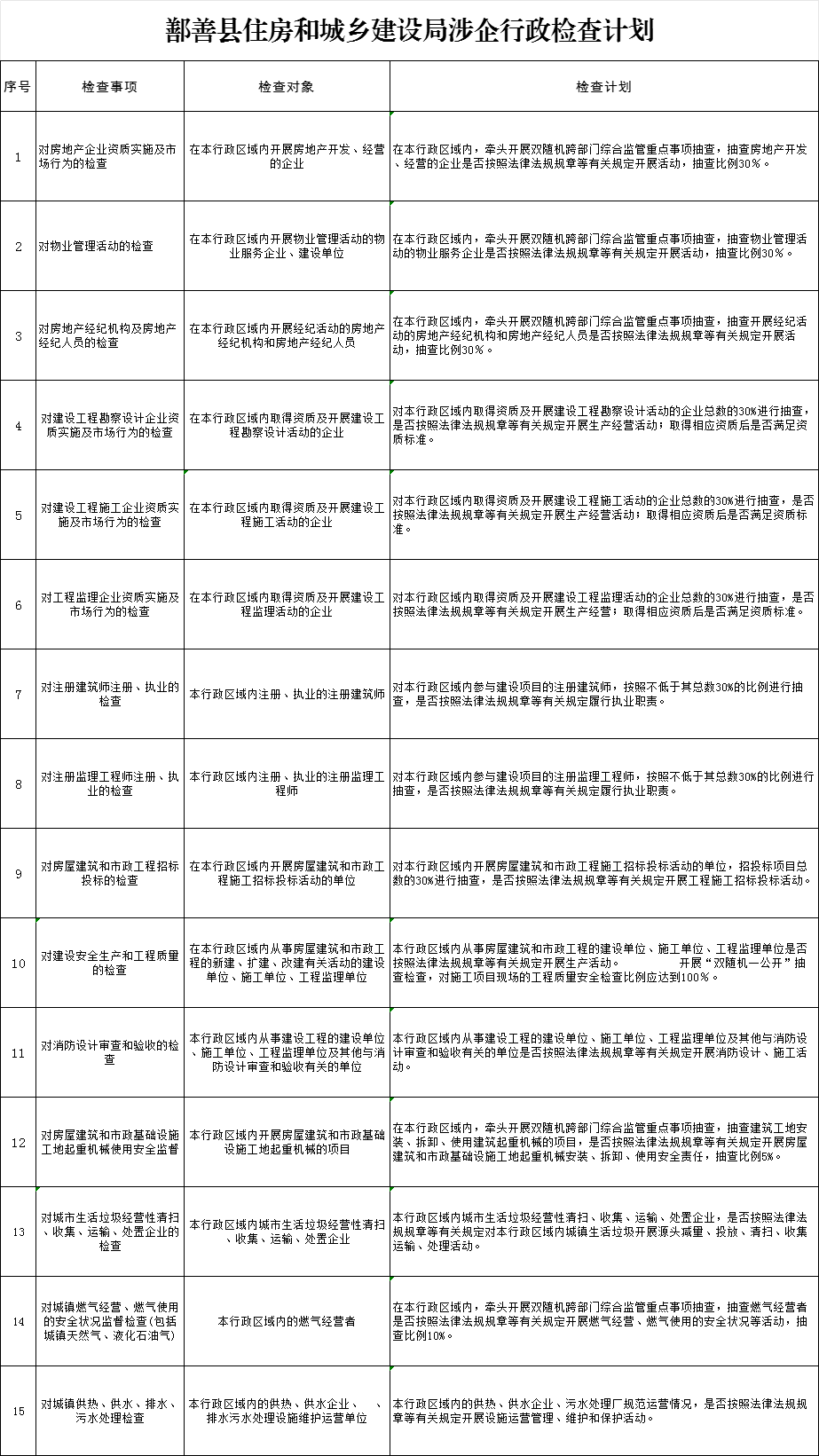 鄯善縣住房和城鄉(xiāng)建設局涉企行政檢查計劃