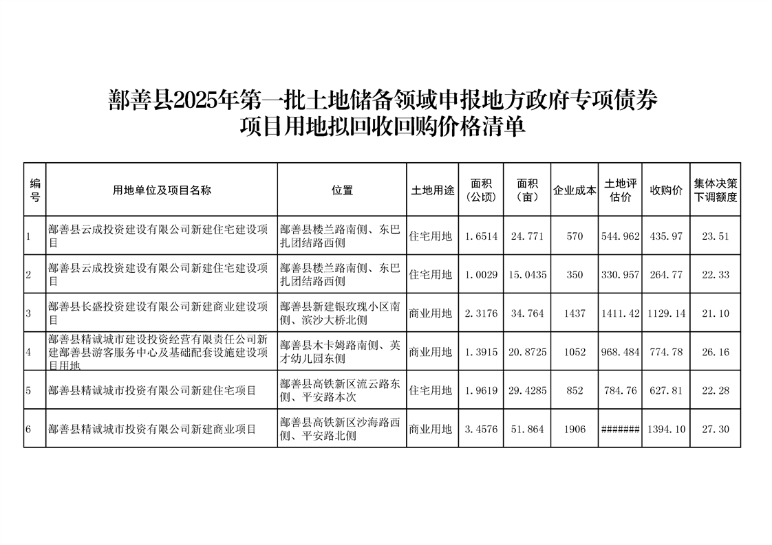 鄯善縣2025年第一批土地儲(chǔ)備領(lǐng)域申報(bào)地方政府專項(xiàng)債券項(xiàng)目用地?cái)M回購(gòu)價(jià)格清單